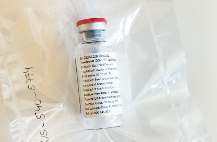| Remdesivir is an experimental medicine that is showing promise in clinical trials for COVID-19. Photo by ULRIC PERREY/POOL/AFP via Getty Images |