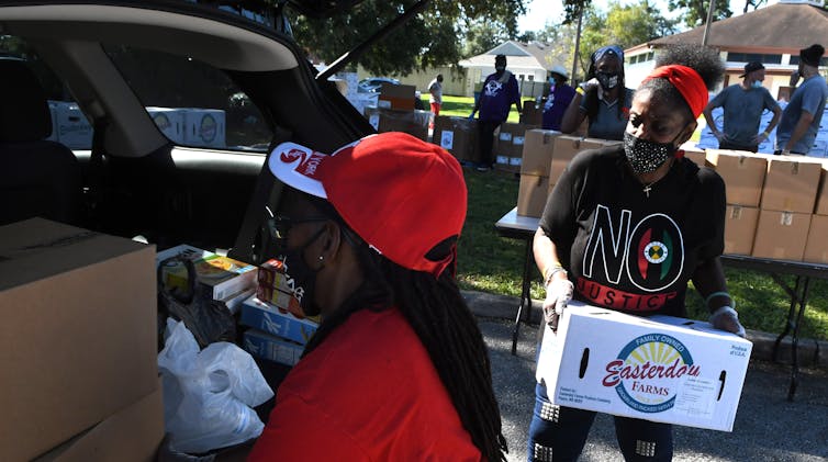 | Food banks, with help from volunteers, scrambled to meet higher demand. Paul Hennessy/NurPhoto via Getty Images |