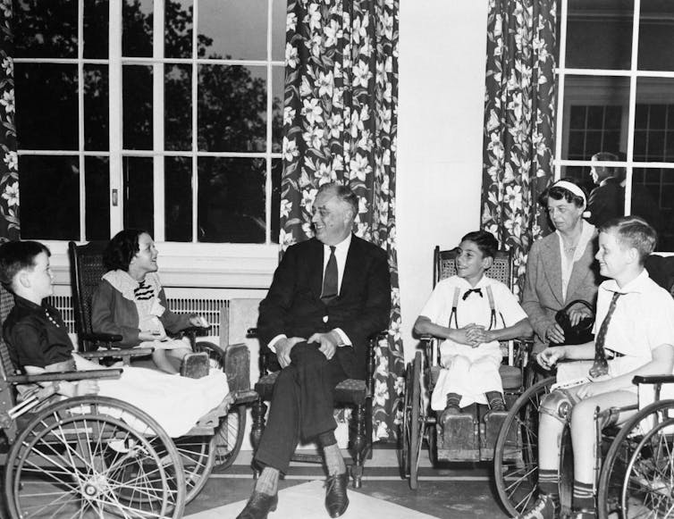 During his first presidential campaign, Republicans whispered that a wheelchair-bound “cripple” was unfit for the duties of the presidency. “It is perfectly evident that you don’t have to be an acrobat to be president,” snarled Al Smith, the former New York governor.