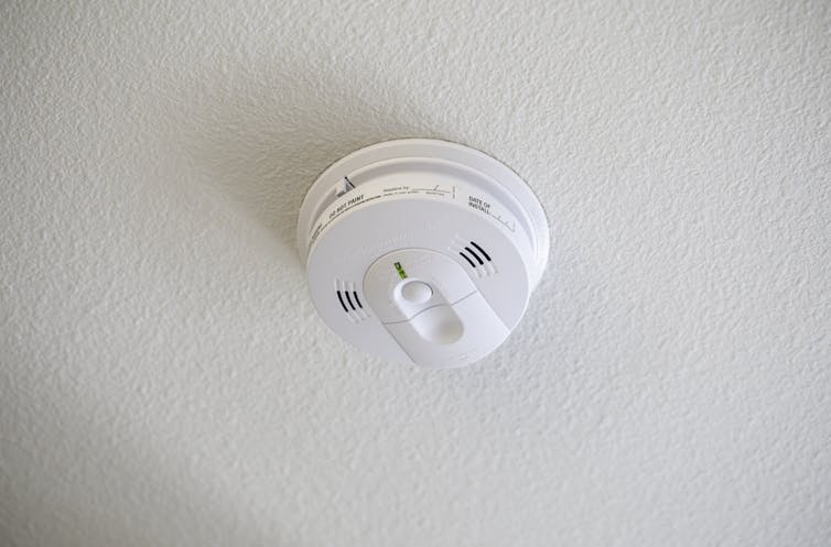 | Sensors in smoke detectors monitor how particles in the air affect a flow of current to the battery. Garrett Aitken/iStock via Getty Images |