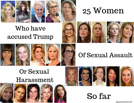 There are 25+ women who have come forward with charges and evidence of sexual assault, including rape, against Trump.