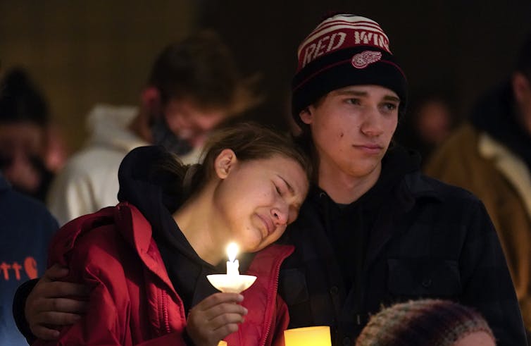 | People attend a vigil for the victims of a school shooting that occurred in Oxford, Michigan, on Nov. 30, 2021. AP Photo/Paul Sancya |