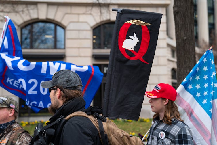 | Many people are led to conspiracy theories and extremist views from less extreme positions. Robert Nickelsberg/Getty Images |
