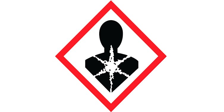 | Carcinogenic chemicals are labeled with a health hazard warning symbol. Peter Etchells/iStock via Getty Images Plus |