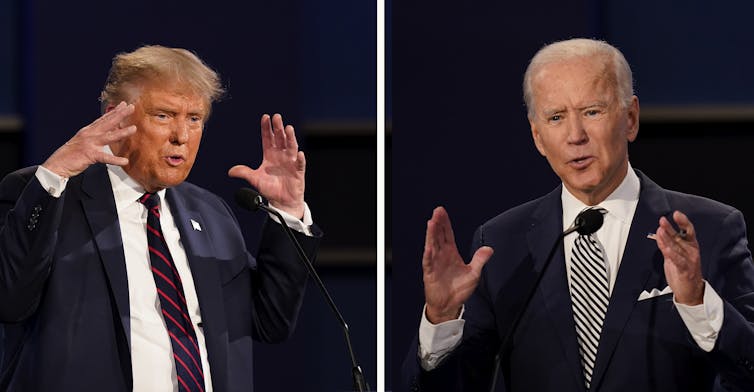 | Polls showed Joe Biden, right, holding double-digit leads over Donald Trump, left, in the run-up to the 2020 election, but he won election by only 4.5 percentage points. AP Photo/Patrick Semansky, File |