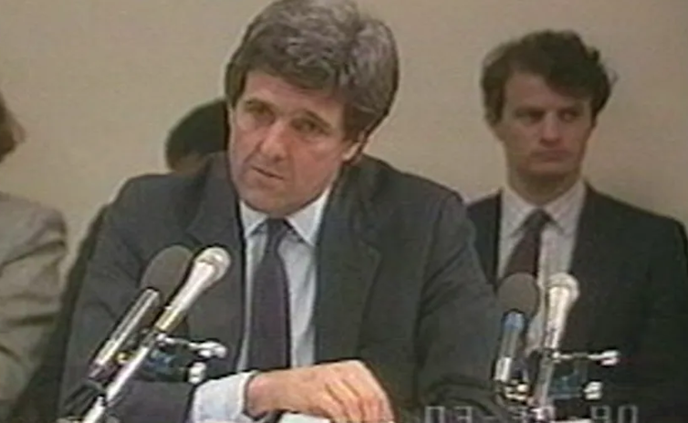 | U.S. Sen. John Kerry grills representatives from the cable industry during a 1990 hearing on consumer protections. C-SPAN |