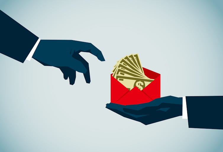 | Recent Supreme Court decisions have made it so that bribing a politician must be cartoonishly blatant to qualify as corruption. DigitalVision Vectors via Getty |