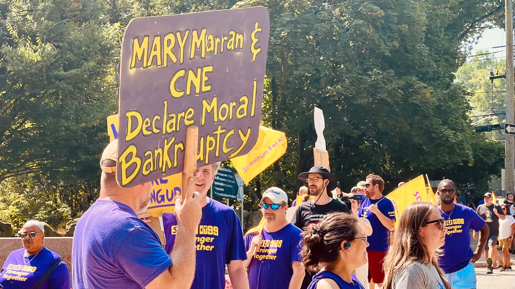 “As an organization, we’ve come together to support one another in good times and in bad. Today is day 90 of this lockout. Today, Care New England and Butler Hospital still choose to spend $65,000 every single day on unemployment. They choose to spend $36,000 investing in inflammatory radio ads, and untold millions of dollars on lawyers and replacement workers.