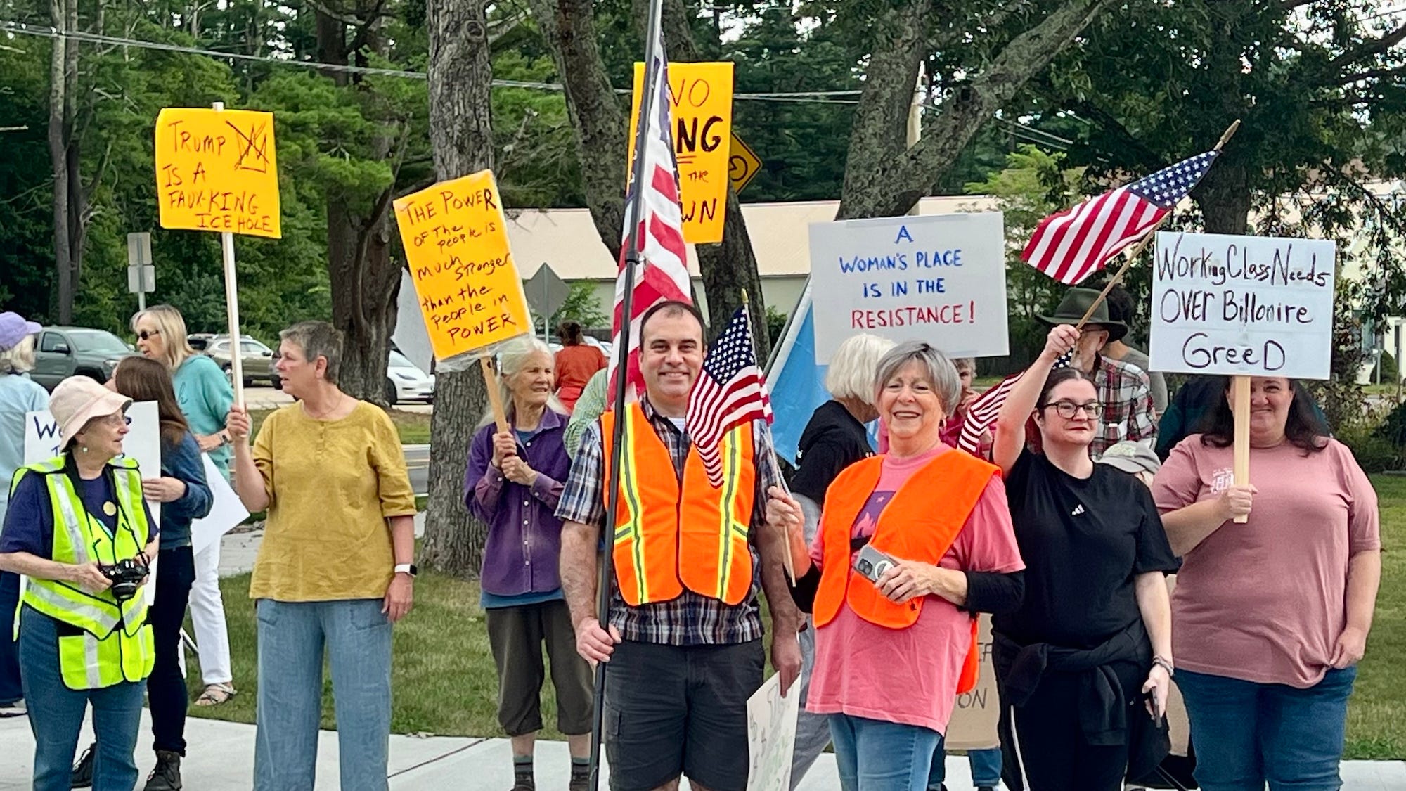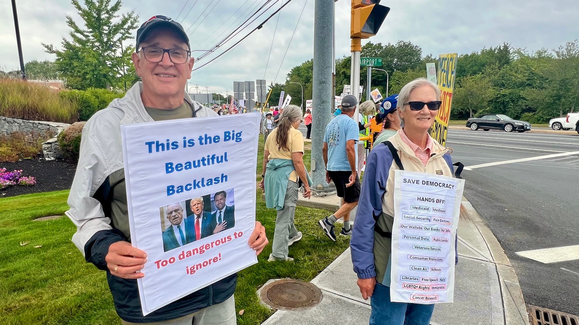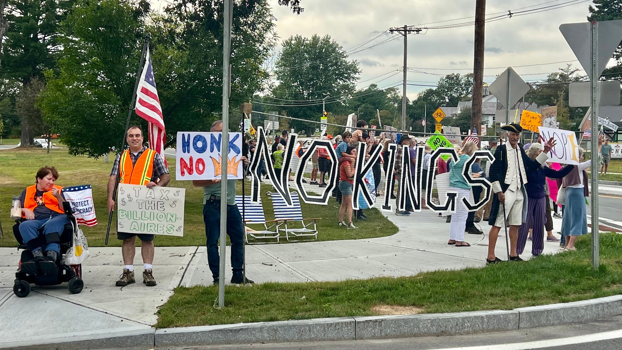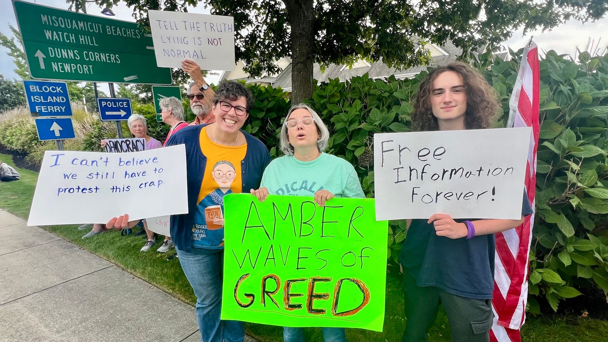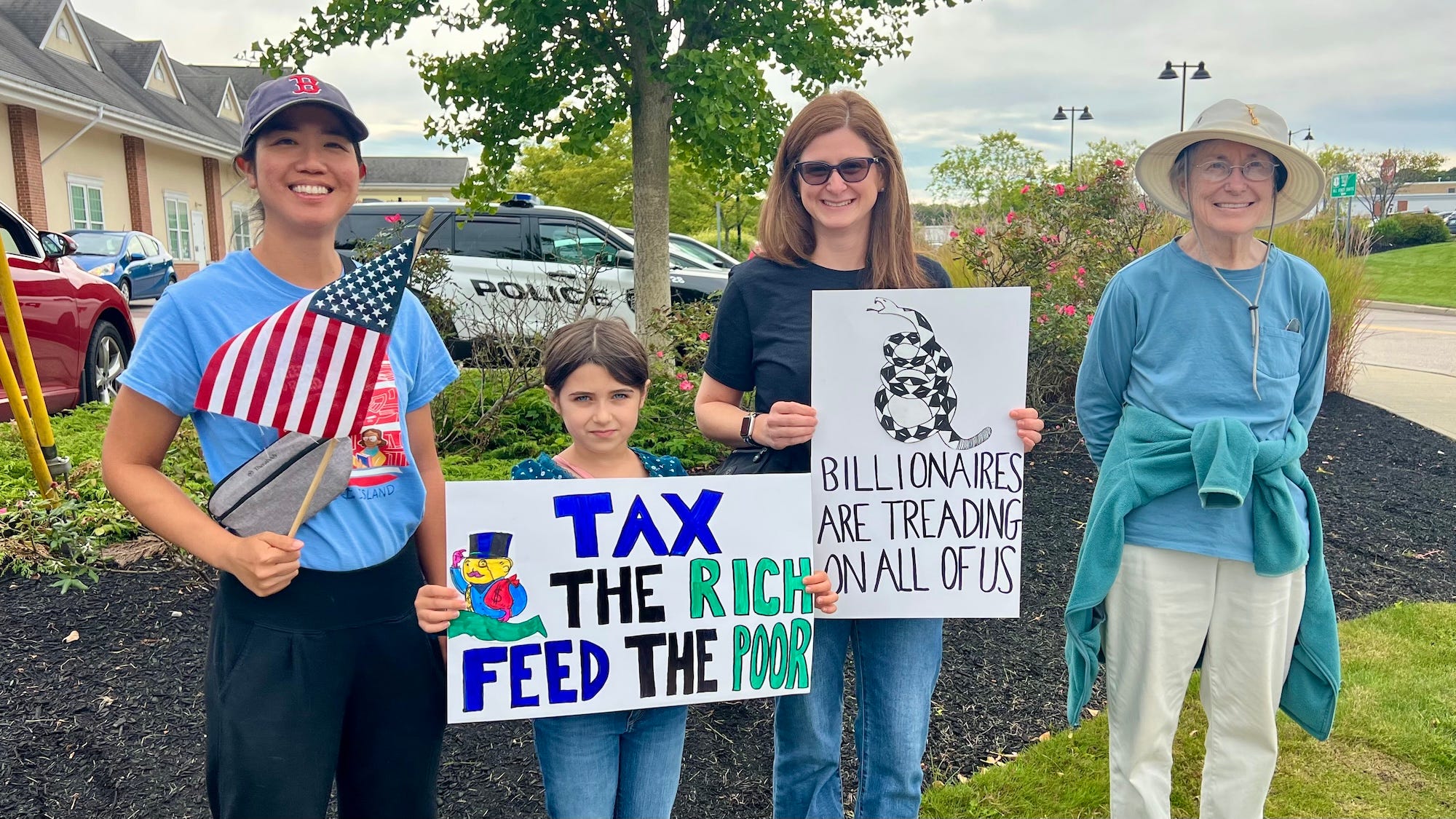 Billionaires.” At 3 pm in Westerly, around 150 people gathered at the corner of