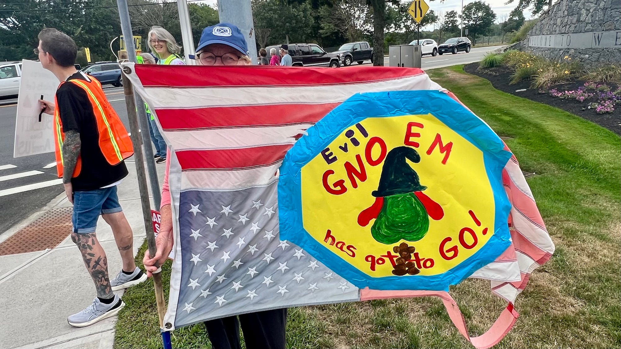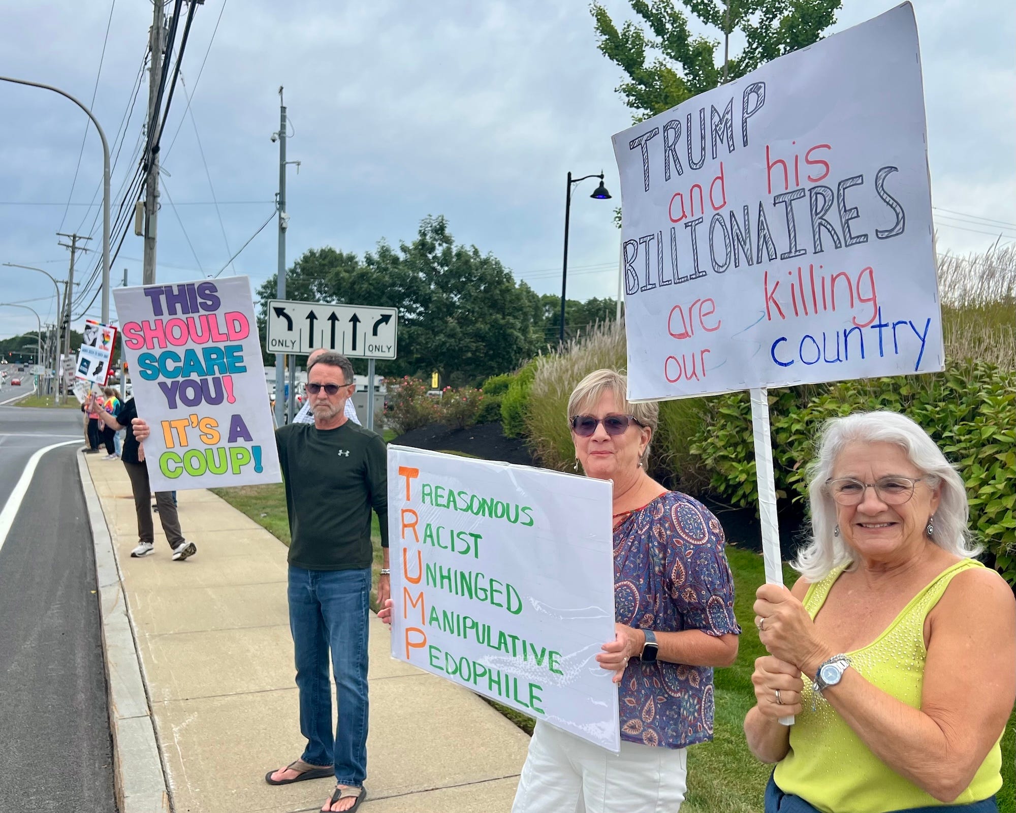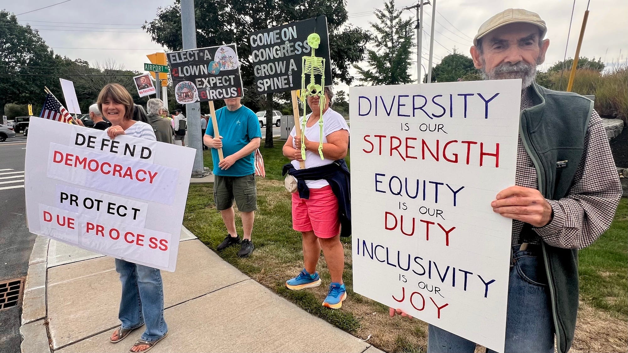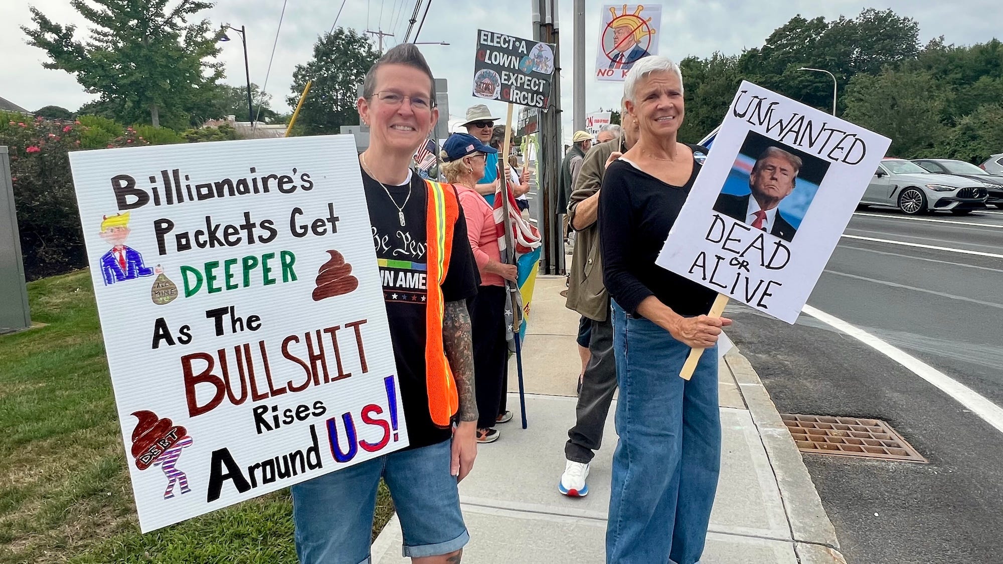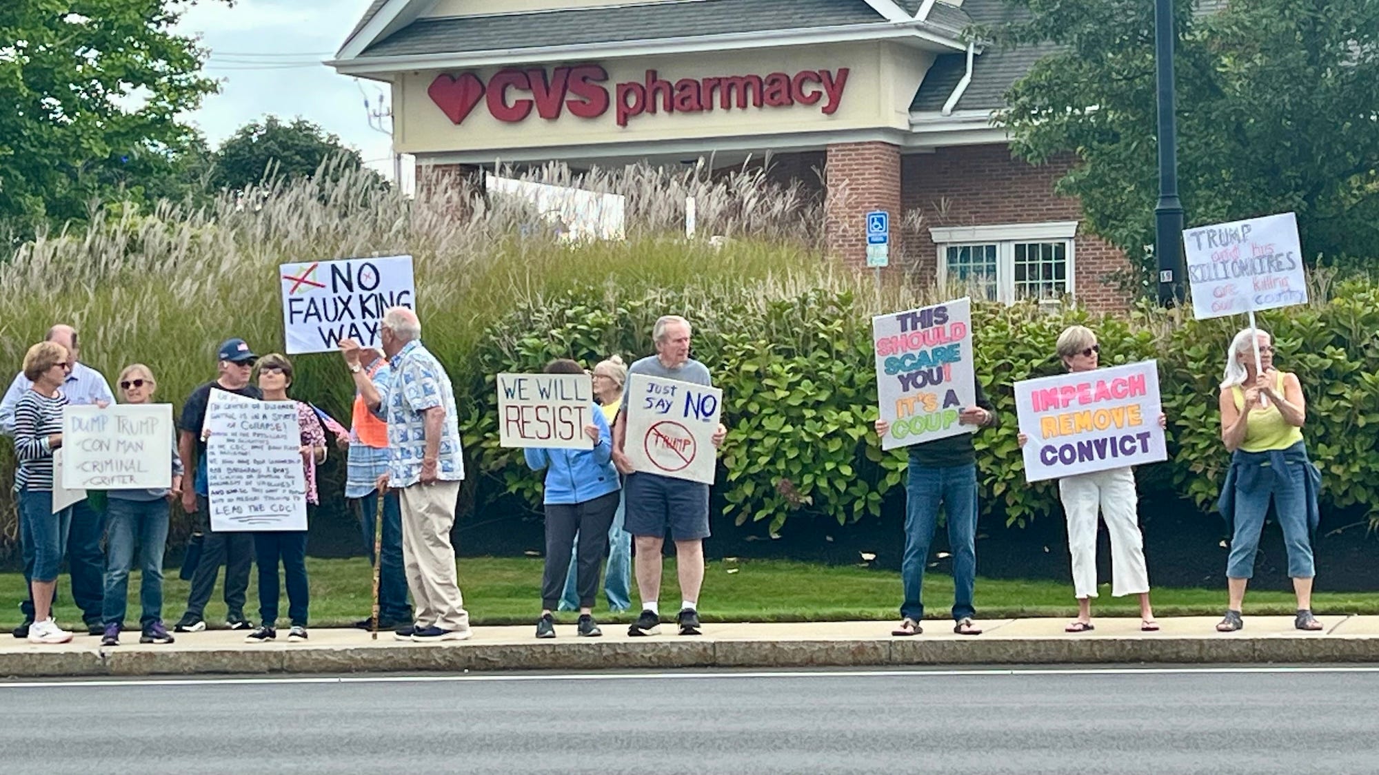 Billionaires.” At 3 pm in Westerly, around 150 people gathered at the corner of