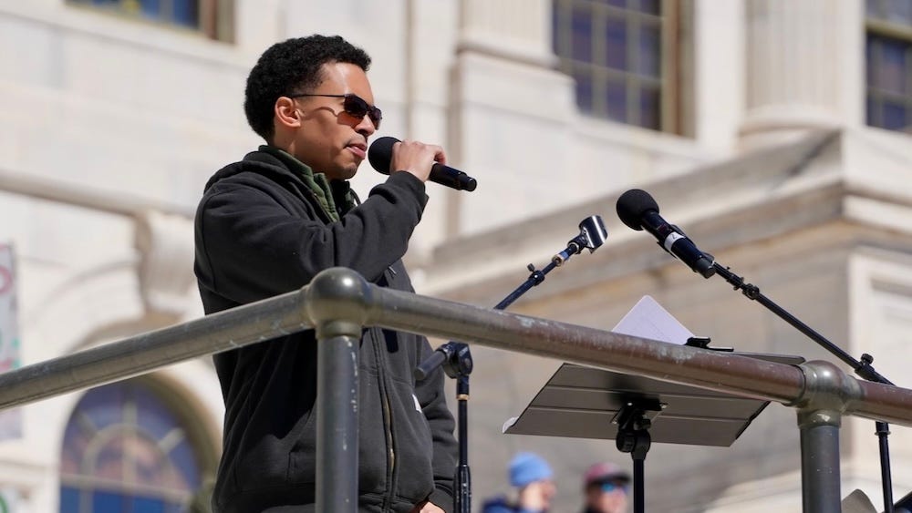 “Let’s rise to our feet. We don’t need to be clean and neat. We plan to take to the streets. You all are the inspiration. Look beside you. It’s on the next generation. Young people, this is your fight. It is your right. It is our collective plight. From day to night, we will not sleep until we have made the wrongs right.”