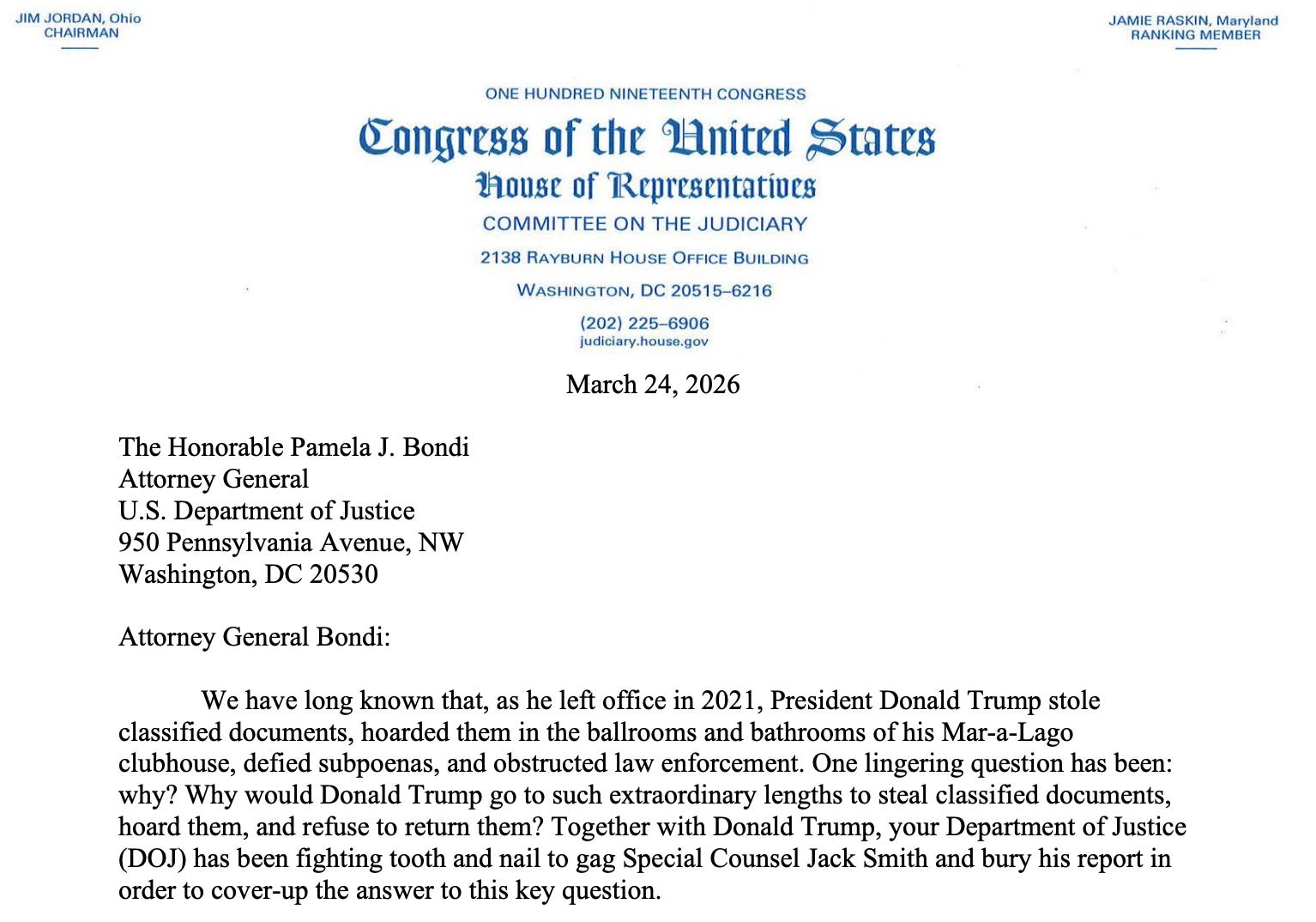 this in the letter to Bondi: “Apparently blinded by the frenzied search to find